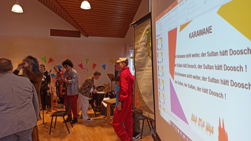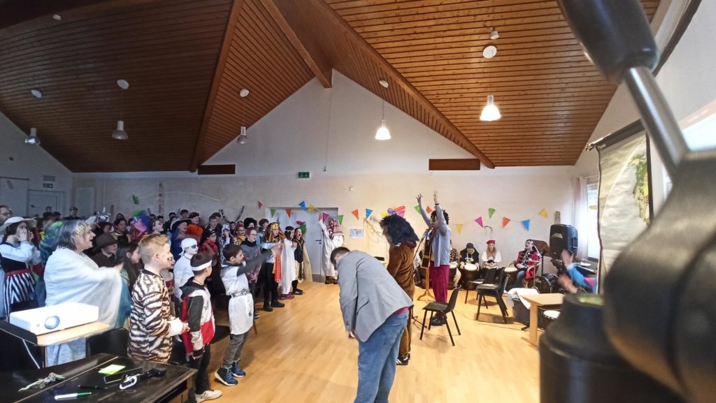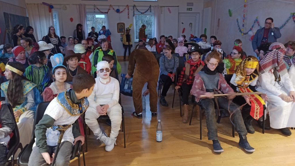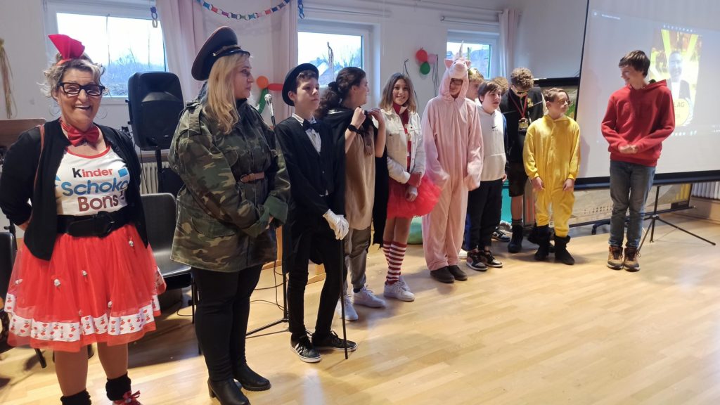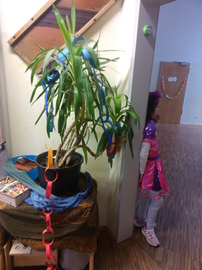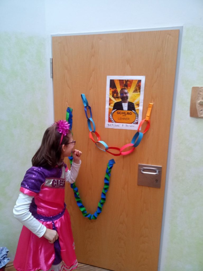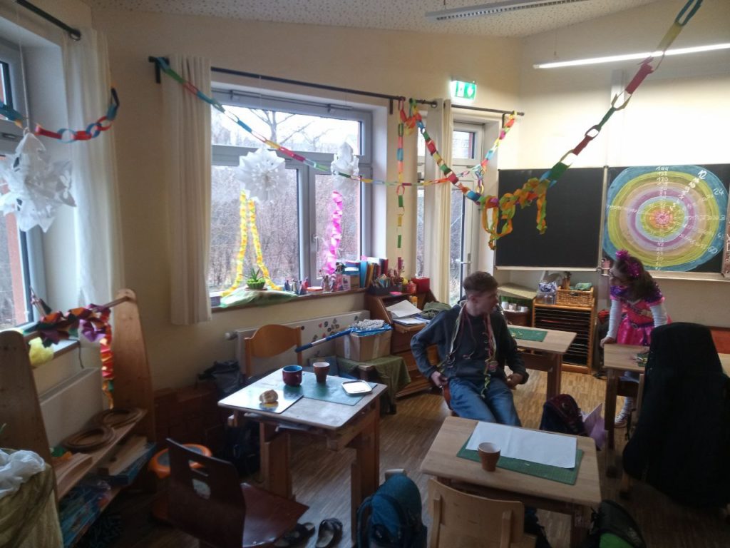 Die Klassen 1-4 feiern für sich, da das Treiben bei der Sitzung etwas zu laut und wild ist. Hier ein paar Eindrücke: