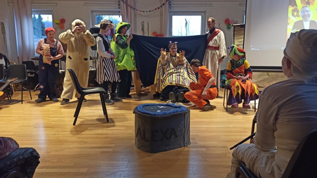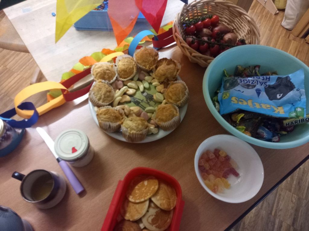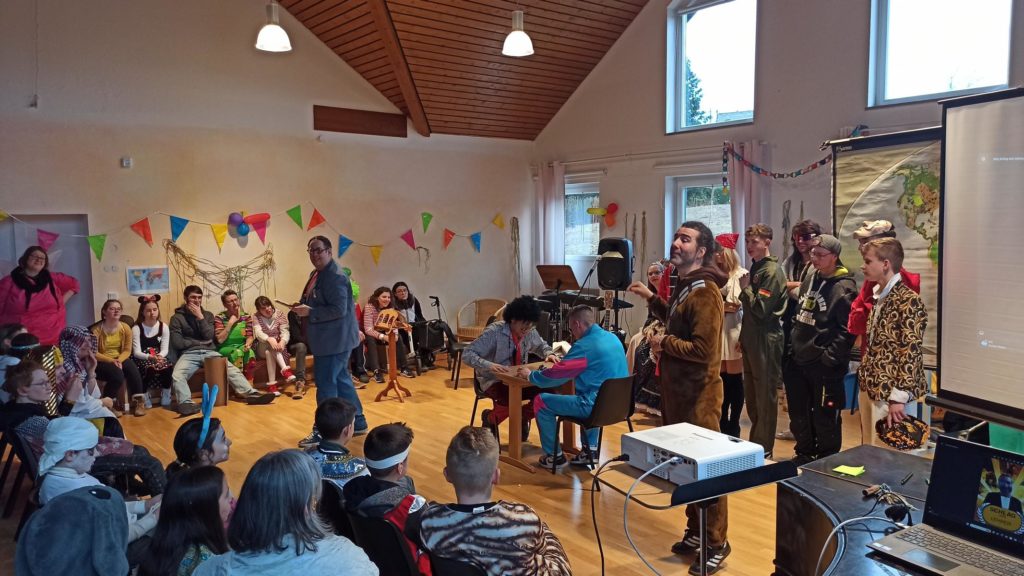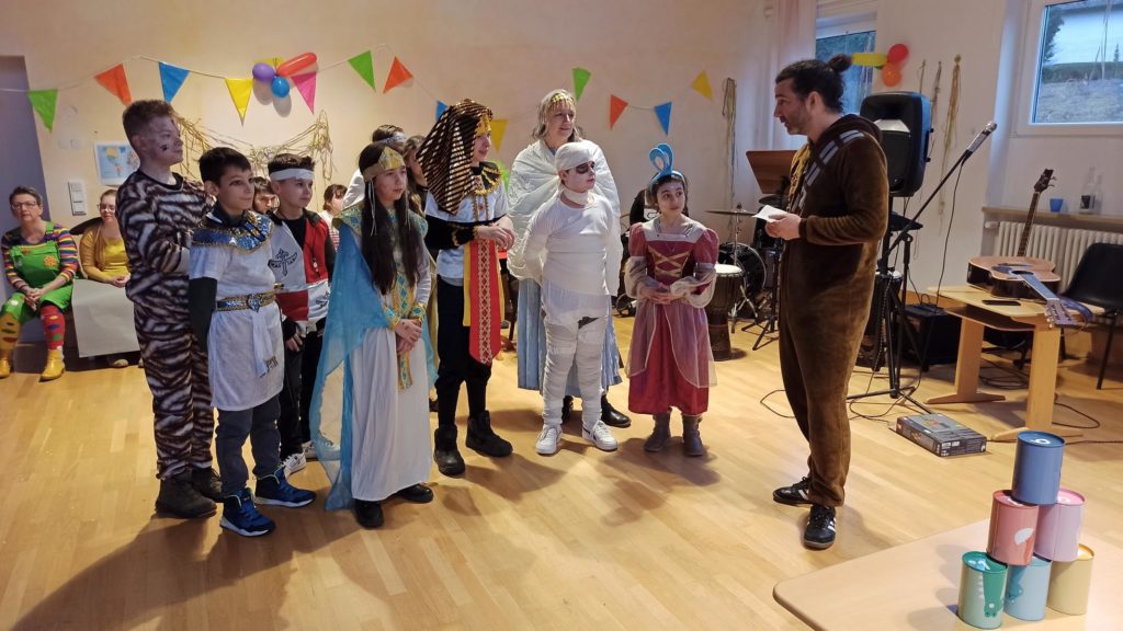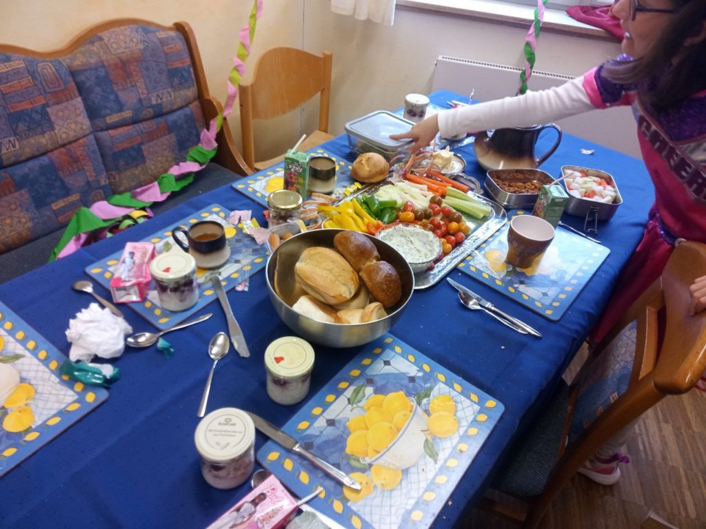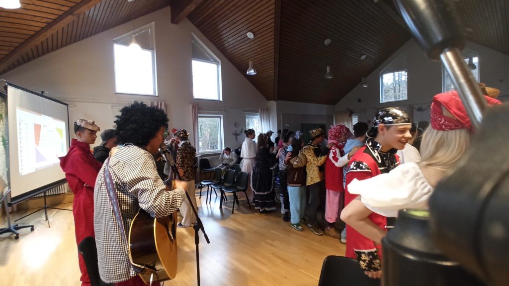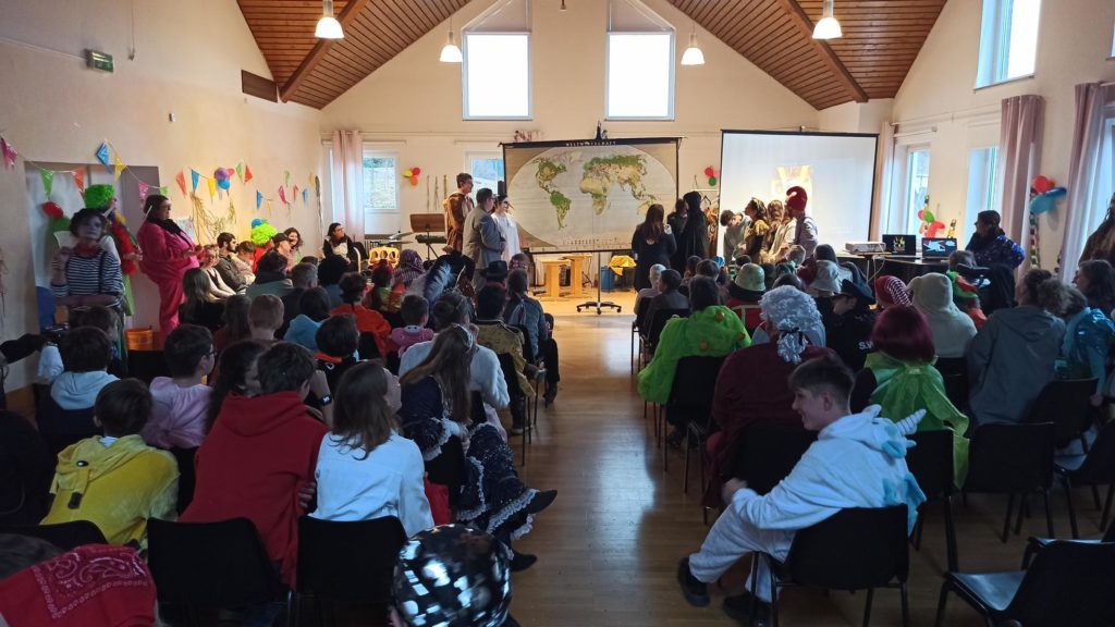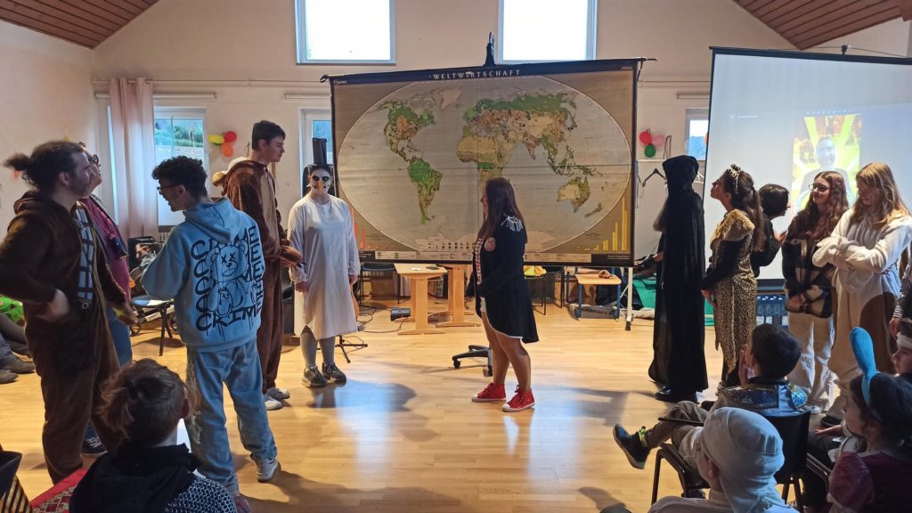 Die Klassen 1-4 feiern für sich, da das Treiben bei der Sitzung etwas zu laut und wild ist. Hier ein paar Eindrücke: