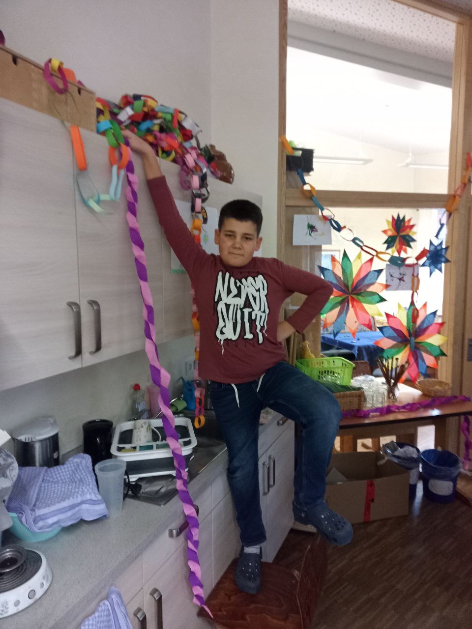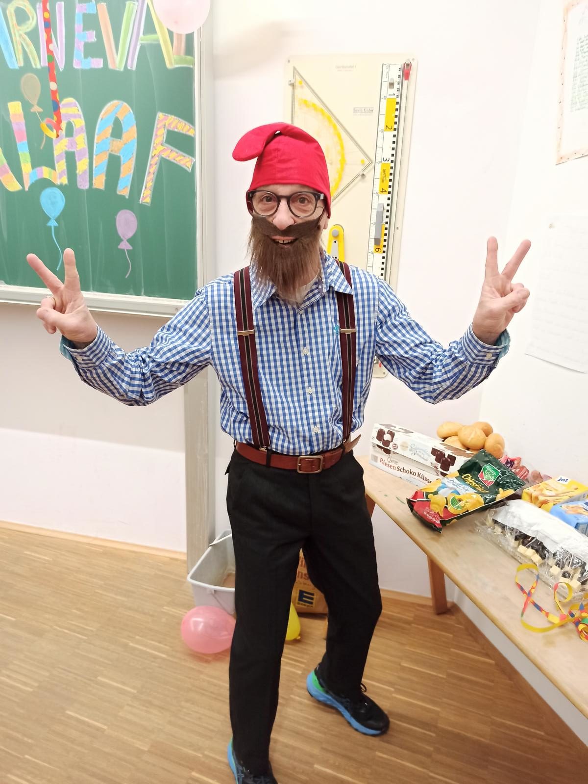 Die Klassen 1-4 feiern für sich, da das Treiben bei der Sitzung etwas zu laut und wild ist. Hier ein paar Eindrücke: