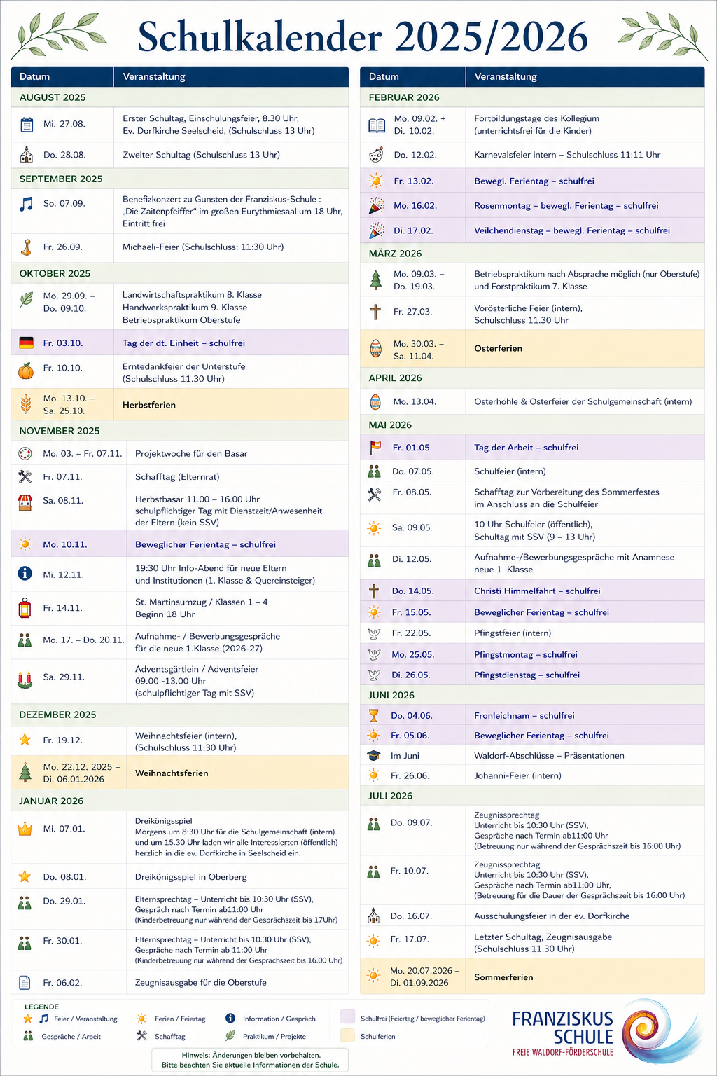 Fr. 15.05. Beweglicher Ferientag – schulfrei